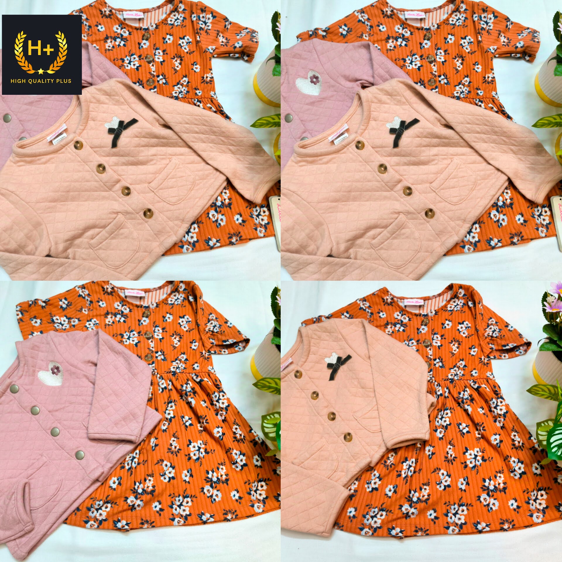 Korean Party Frock 2 Piece Set for Girls (0-2 Years) – Pink
